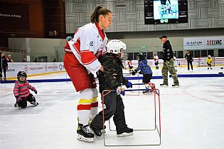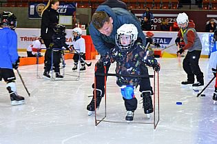 V hale Polárka byly pro malé zájemce o náš národní sport připraveny zábavné aktivity na suchu, během nichž jejich doprovod vyřešil nutnou administrativu a odnesl si i pár hokejových dárečků. Caparti se mezitím oháněli hokejkou, házeli na přesnost, hráli stolní hokej nebo si vybarvili tematické omalovánky. Hodně práce pak dalo nasoukat všechny do příslušné výstroje a vyrazilo se na led. Tam už děti s nulovými, menšími i většími zkušenostmi s bruslemi klouzaly za puky i balónky, s podporou dospělých nebo pojízdných konstrukcí, ale všichni s radostí z pohybu. Po stranách při tom mohli sledovat, jak vypadá dětský hokej, „když už se to trochu umí“. Nakonec se děti, které zažily na ledě svou premiéru, i ty ledem ostřílenější, vyfotiliy spolu s trenérským týmem, který je připraven posouvat je v jejich dovednostech dál.