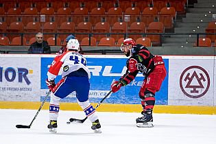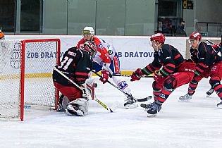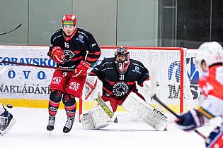 Další průběh střetnutí ale žádné brankové hody s lídrem tabulky nenabídlo. Třebíč dokázala srovnat skóre v polovině 34. minuty, kdy si sjel od pravého kruhu na Dočekalovu přihrávku Vojtěch Střondala a pohotovou ranou k levé tyči nedal Šimbochovi šanci - 1:1. Rozhodnout mohla již třetí třetina, ve které jsme se znovu ujali vedení. Krátce před Střondalovým návratem z trestné lavice se k puku dostal Alan Łyszczarczyk, který pohotovou ranou na vzdálenější tyč podruhé rozjásal domácí příznivce v hale - 2:1. Když už to vypadalo, že si rysi v krátkém sledu v domácím prostředí vyšlápnou na dalšího soupeře z popředí tabulky, nahodil v čase 55:47 Daniel Pozil puk na naší branku a černý touš si přeci jen našel cestičku za záda frýdecko-místeckého gólmana Juraje Šimbocha, který let puku před sebou bohužel vůbec neviděl - 2:2.