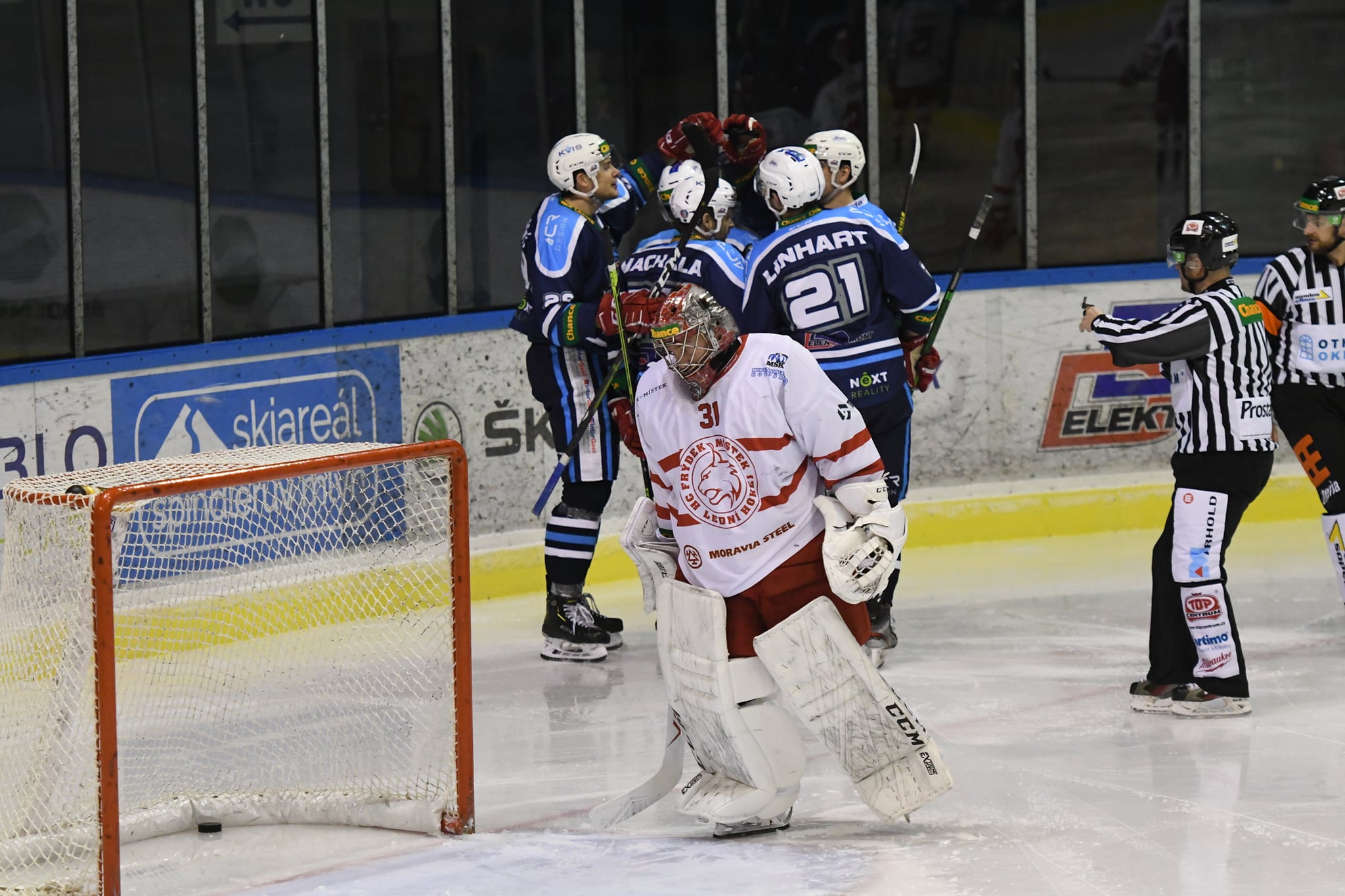Slezané vstupovali do zápasu se třemi porážkami za sebou na svém kontě. Tentokrát před nimi ležel až moc těžký cíl. Nováček z Vrchlabí je v parádní formě, a to rysům ukázal již z úvodu utkání. Protože během prvních dvou minut se domácí tým trefil hned dvakrát. Již po čtyřiceti sekundách zvedal ruce ke stropu haly Ondřej Machala, který se prezentoval nádhernou individuální akcí, kdy si ze svého obranného pásma dojel po pravé straně až před branku, bekhendem si posunul kotouč doleva do brankoviště a zakončoval prakticky do prázdné branky. V čase 02:00 poskočilo skóre na světelné tabuli už na 2:0. Ondřej Vála přibruslil na vrcholek levého kruhu, dostal přihrávku a parádní střelou propálil kotouč mezi betony Danečka. Rysi se snažili, dvě hezké šance si vypracoval Milan Mikulík. Nejprve mu ale dorážku z brankoviště zlikvidoval parádním rozštěpem Štepánek, následně zase proti dobré ráně z levé strany brankářův beton. Strážce vrchlabské svatyně uspěl i proti dobrým pokusům Floka, Martynka a dalších hráčů.