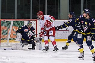 Během první třetiny nebyl k vidění žádný gól. Domácí rysi se pokoušeli prostřelit Aleše Stezku, který výborně Ústí držel. Do jedné takové slibné akce se dostal Štěpán Novotný, který vystřelil z prostoru mezi kruhy, ale Stezkovi pomohla pravá tyč, která odpálila kotouč pryč od branky. Do slibných šancí se také dostali Lukáš Kovář a Adam Flok.
