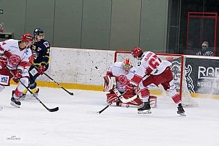 Adamu Flokovi to vyšlo až ve dvacáté páté minutě po nevědomé spolupráci s Marianem Adámkem. Adámek dobře dostal kotouč do útočného pásma, kde se pokusil vypálit, ale puk se odrazil od brusle jednoho z ústeckých hráčů přímo k Adamu Flokovi. V tu chvíli to byl Flok proti Stezkovi.
