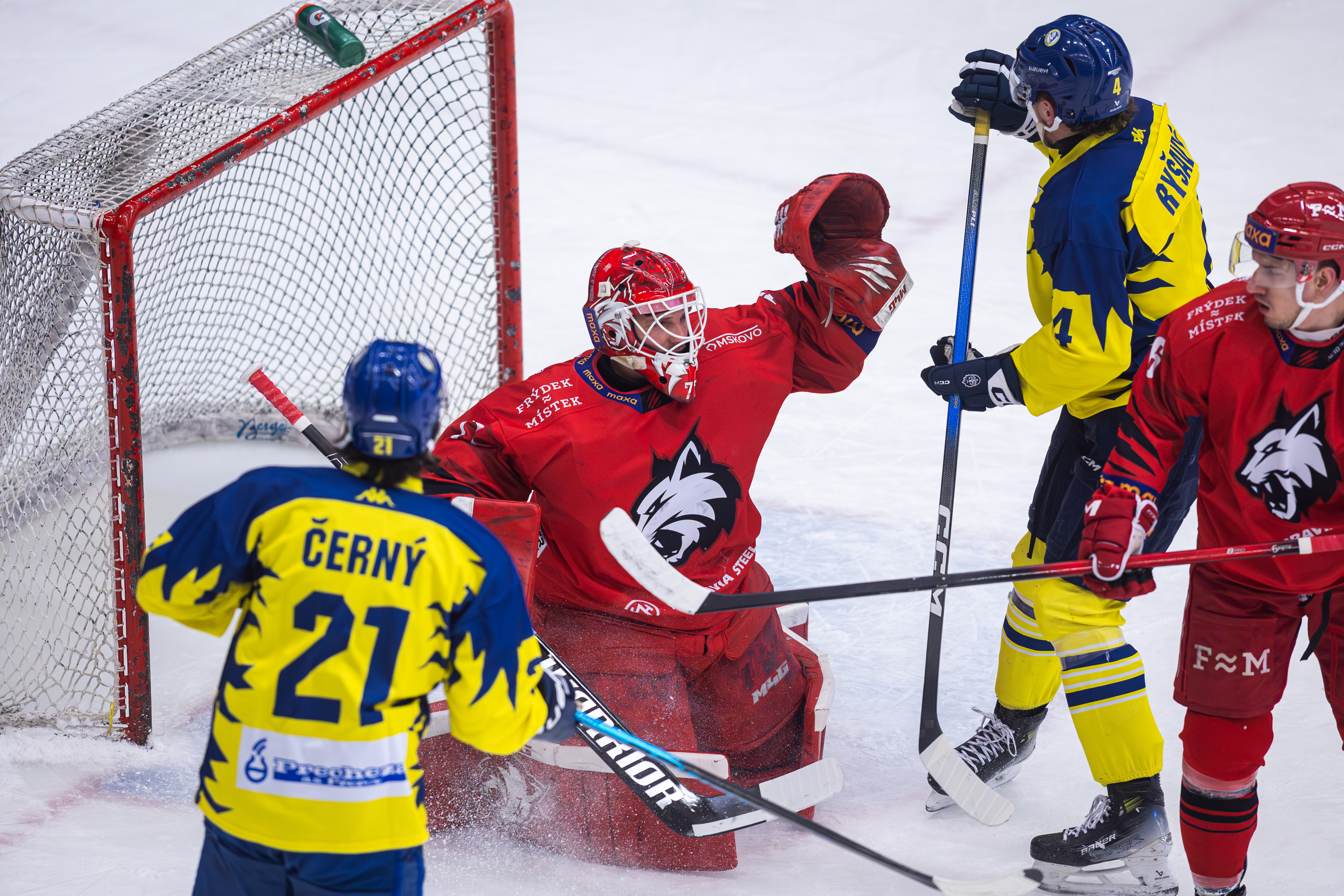 Rozhodující momenty přišly po polovině třetiny. Ve 48. minutě hosté srovnali, když Svačinova zadovka naslepo projela přerovskou obranou až k mantinelu na Jakuba Tepera. Ten směřoval puk rychle před branku a za záda Švančary – 1:1. O necelé tři minuty později se rysi radovali znovu. Teč Průškova nahození byla po dlouhém zkoumání u videa uznána a červenobílí se tak dostali do vedení 1:2. Přerov v závěru vytvářel tlak a zkoušel to i bez brankáře, ale Dolejš se spoluhráči odolali. Frýdek-Místek si tak odnesl tři vybojované body.