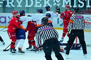 Nepříjemná podívaná se naskytla před koncem zápasu, kdy byl Patrik Volas tvrdě dohrán. Těžce se zvedal z ledu, ale odjel na střídačku po vlastních nohách. Ani pět domácích gólů nebylo finálních. Tím, kdo přidal šestý, byl Robin Gerych, který rozvlnil síť za brankářem hostů. Zápas tak skončil za stavu 6:1!