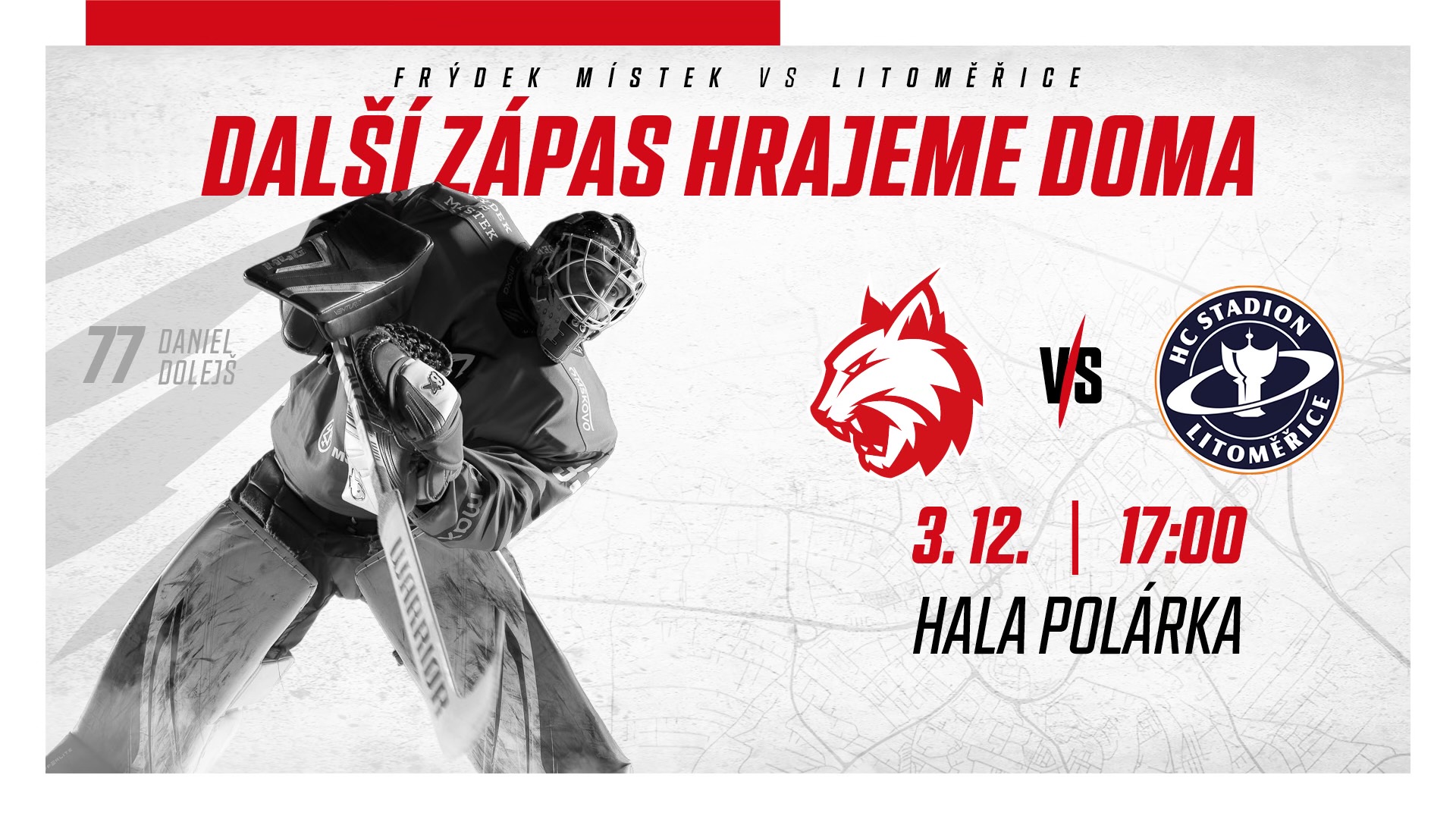 V dalším kole Maxa ligy čeká Frýdek-Místek na domácím ledě ve středu 3.12. od 17:00 soupeř z Litoměřic. Přijděte podpořit naše rysy!