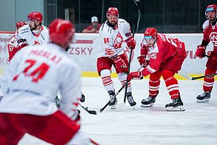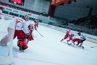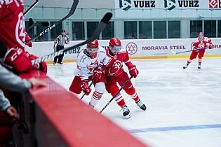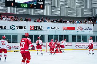 Pojďme ale k samotnému zápasu. Vyprodaná hala se v parném letním období musela hokejem bavit, oba týmy nabídly divákům v úvodní dvacetiminutovce tři branky. Jako první se prosadili domácí rysi. To ke konci 6. minuty našel Kozlík krásně mezi kruhy zadovkou Radka Veselého a ten pohotovou ranou nedal Kacetlovi v třinecké bráně šanci - 1:0. Extraligista se ovšem nenechal zahanbit. O čtyři minuty později bylo totiž srovnáno. Švančara si nejprve poradil se zakončením Cedza, na dorážku důrazného Daniela Kurovského už ale náš gólman nestačil - 1:1. Tři minuty před první přestávkou pak hosté dokázali skóre otočit. Haman si vyměnil na modré čáře puk se Sikorou, ten viděl u pravé tyče zcela volného Michala Teplého, který střelou z první prostřelil gólmana Švančaru - 1:2. V čase 18:51 mohlo být opět srovnáno. To se Ostřížek protáhl kolem mantinelu, před bránou našel najíždějícího Kucseru, kterému v přesném zakončení zabránila tyč.